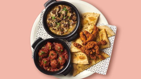Some of our favourite starters, perfect for sharing. Mushroom Al-Forno, Meatballs and Crispy Chicken Fries served with an oregano flatbread
