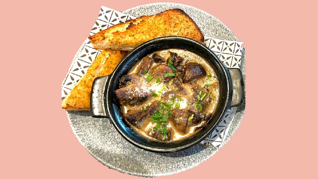 Chestnut mushrooms cooked in a creamy porcinisauce, topped with Italian cheese and servedwith wedges of toasted garlic ciabatta
