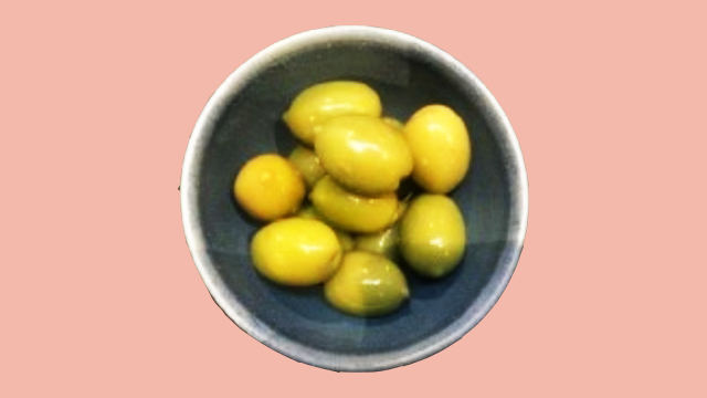 Large green Amfissa olives, brine soaked and buttery with a tart, citrussy balance